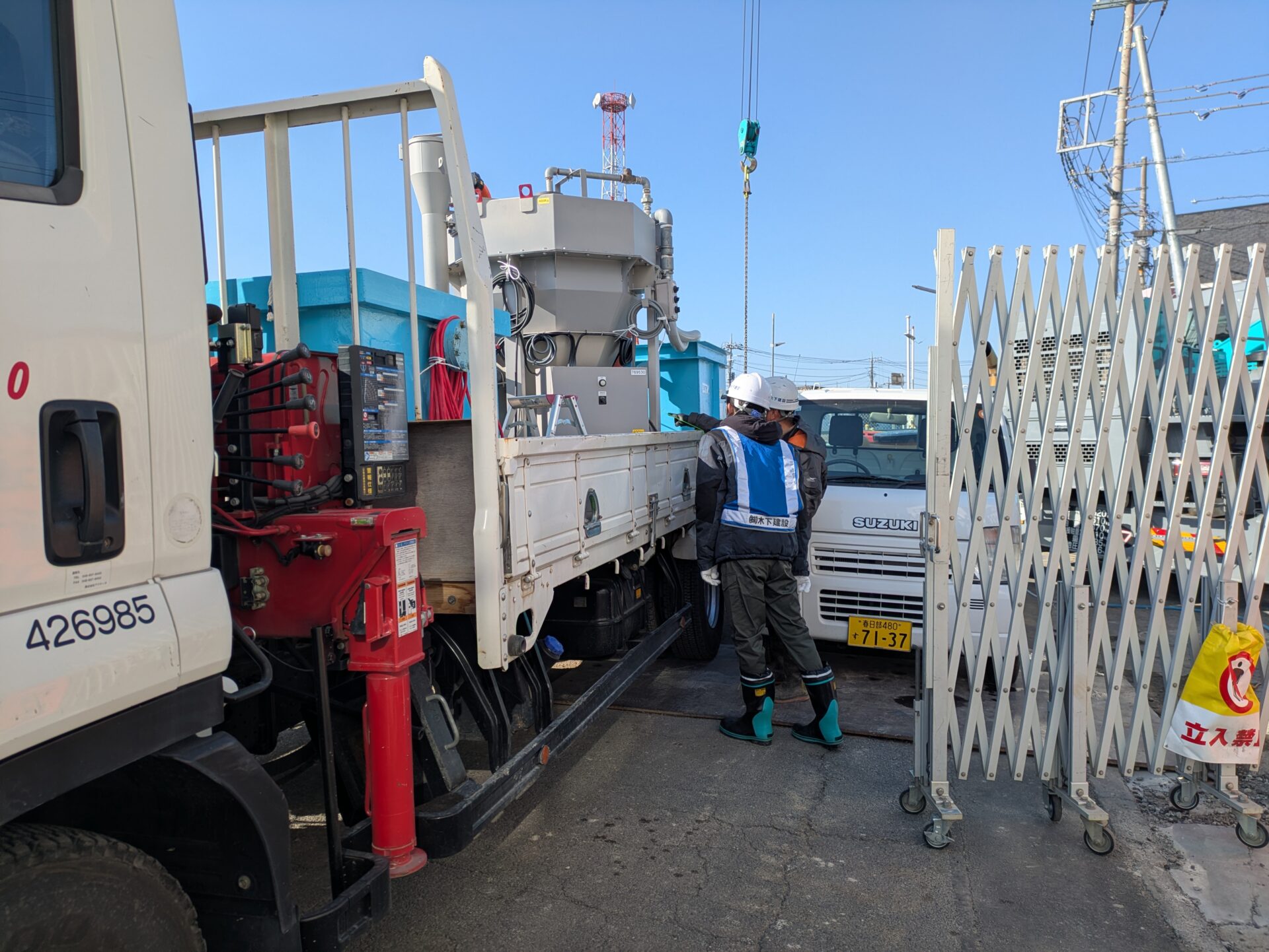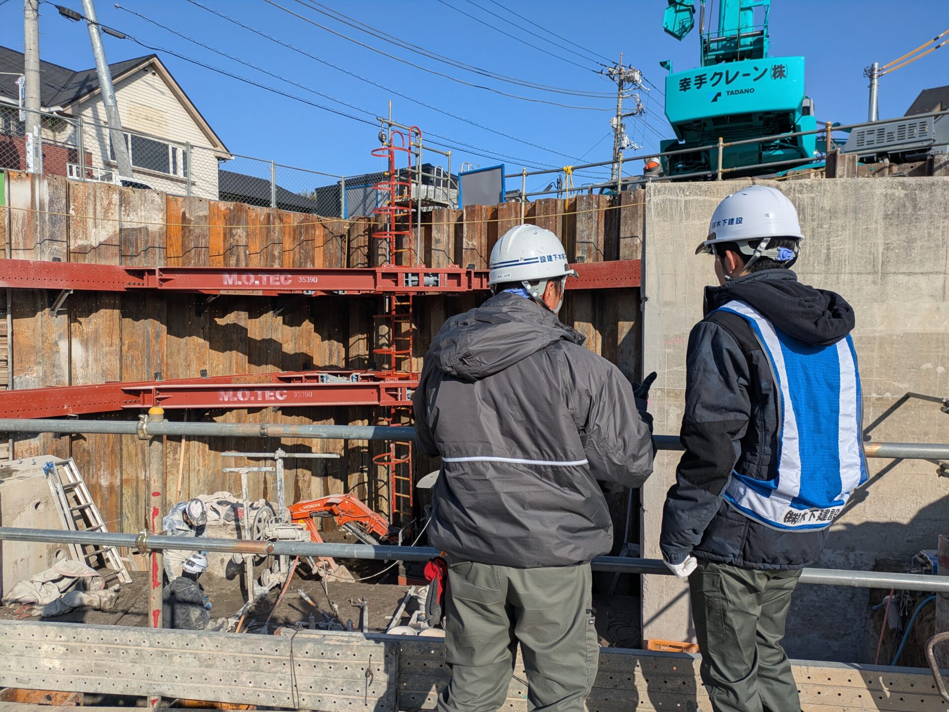現場では、工事の概要説明をはじめ、実際の作業の流れや安全管理について説明を行いました。