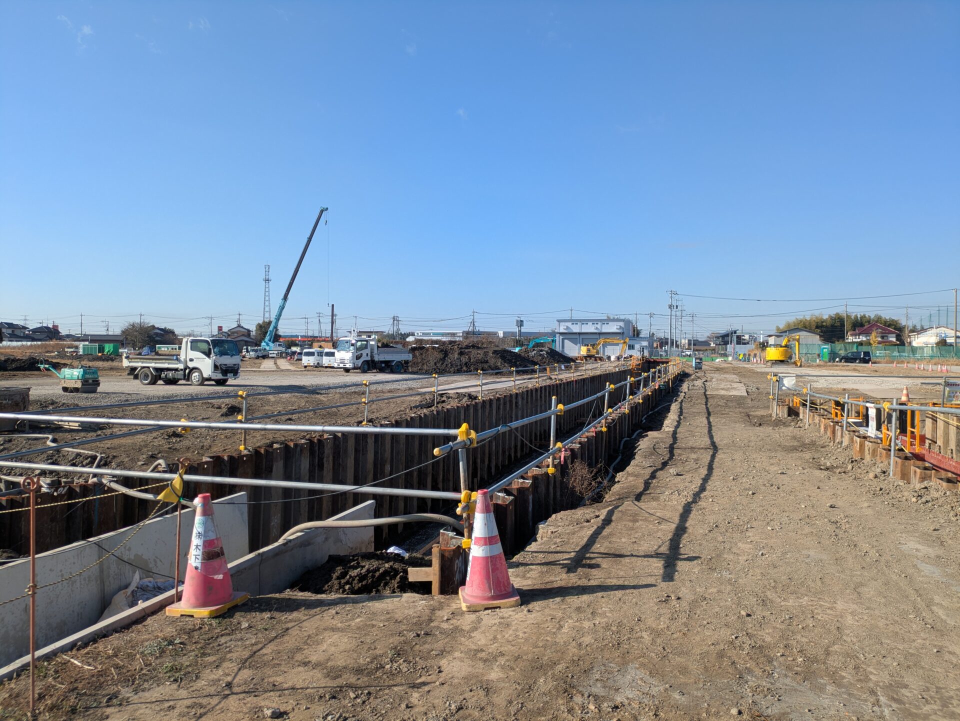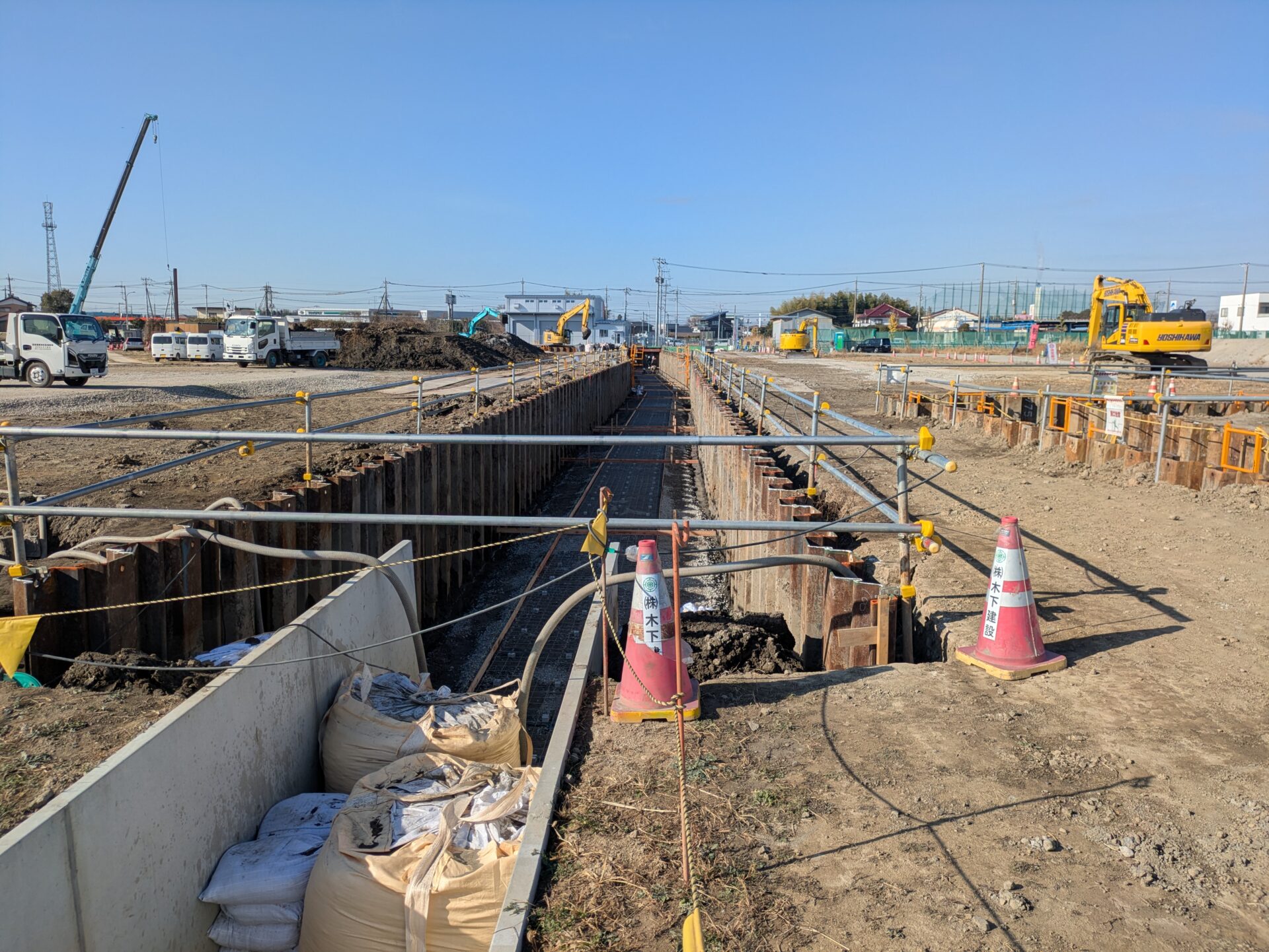 工事は次の工程へ進み、水路を設置するための基礎を作っています。